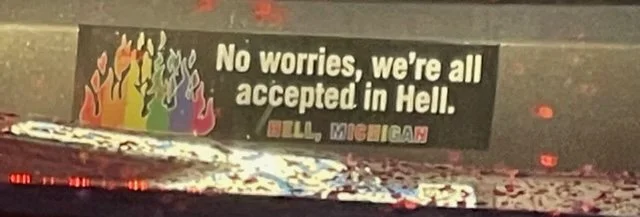 “No worries, we’re all accepted in Hell” written next to a rainbow colored flame. Props to the marketing people behind Hell, Michigan… this has been a bumper sticker that has been ingrained in my mind for the last several weeks. I find myself haunted by it… thinking about it almost daily.